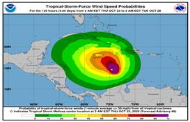 Tormenta tropical Melissa se aproxima al noroeste, rumbo a Jamaica y el suroeste de Haití