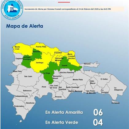 Las provincias en alerta amarilla son: Espaillat, María Trinidad Sánchez, Hermanas Mirabal, Santiago, Puerto Plata y Montecristi.