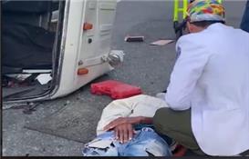 Choque en autopista Duarte deja a conductor atrapado; comunitarios le salvan la vida