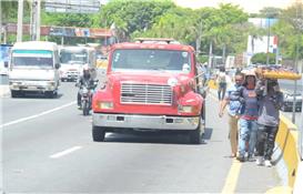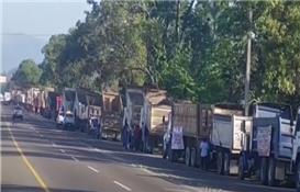 Protesta de camioneros del sector agregado provoca largo taponamiento en autopista Duarte