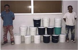 PN apresa dos pintores y recupera 12 cubetas de pintura robadas de un centro educativo de Villa Vásquez