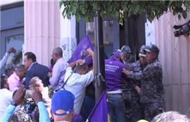 (VIDEO) "Somos PLD y no tenemos miedo", militantes rompen puerta del Palacio de Justicia en apoyo a exfuncionarios presos