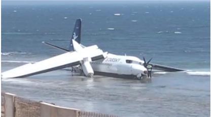 En vídeos publicados por medios locales, el avión, que se dirigía a la ciudad de Galkayo, capital de la regió de Mudug (centro-norte), aparece varado en la playa mientras los servicios de emergencia evacúan a los ocupantes.